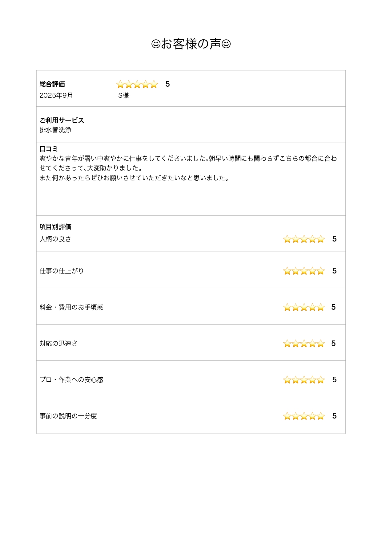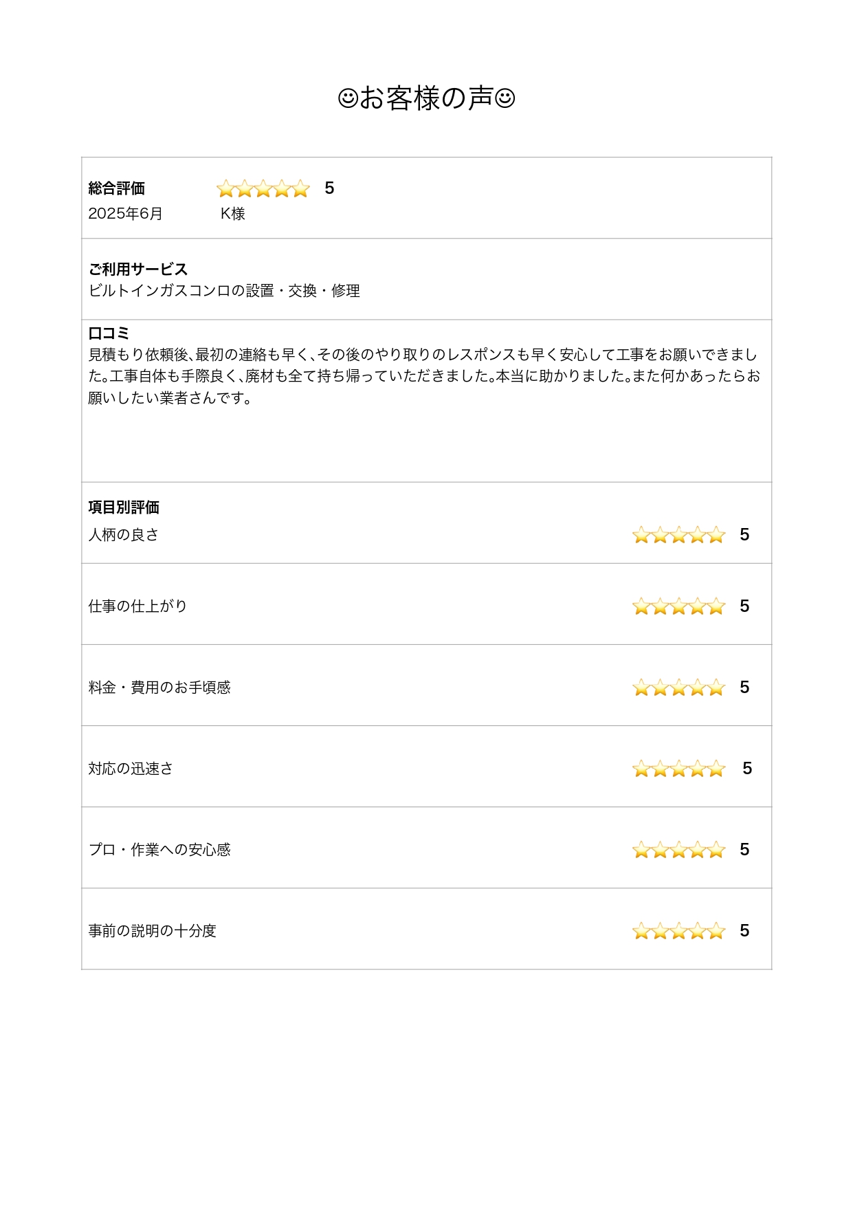 お客様の声